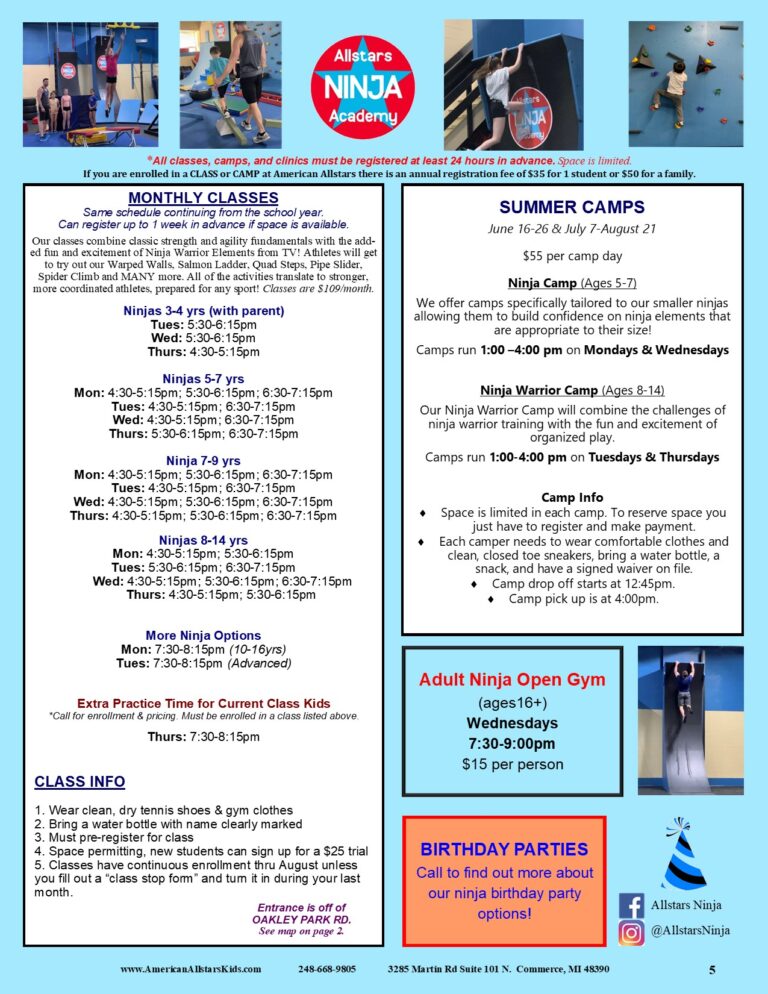 2026 Summer camps schedule will be available in the spring